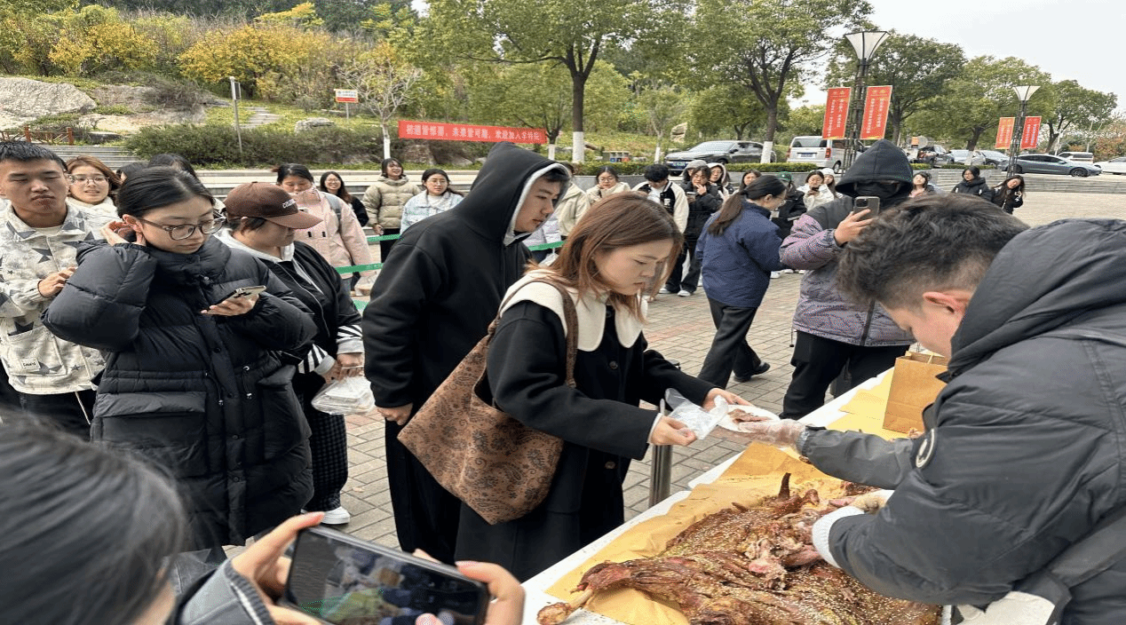 活动自11月12日在洞山校区拉开帷幕,现场设置了糖葫芦、烤红薯、章鱼小丸子等11个特色小吃摊位,并开展了套圈游戏、巨型蛋糕免费分享等活动,现场气氛热烈。随后,第二餐厅深度融合地方特色,推出了徐州烤全羊、非遗拓印等环节,将美食与传统文化巧妙结合。碧螺校区第三餐厅则特别邀请了西藏学生带来极具民族风情的歌舞表演,并在后续的香包DIY和面团DIY活动中,西藏学生与教师携手互动,在欢声笑语中促进了民族文化的交流与校园共融。美食节在碧螺校区第四餐厅迎来收官之作,现场不仅设有东北烤冷面、徐州蒜爆鱼等各地风味小吃,还再次准备了巨型蛋糕与师生分享,活动在温馨欢乐的氛围中画上圆满句号。